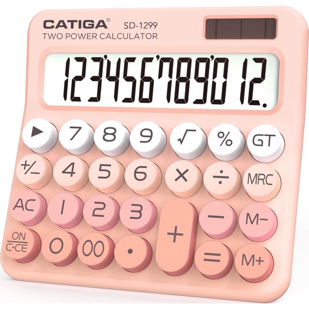 CATIGA 12 Digit Desktop Calculator Basic Desk Calculator with Large LCD Display, Big Buttons, 4 Function, Solar and Battery Dual Power, for Office, School, Home, SD-1292 Fresh Blue(2) Pinkwhite)