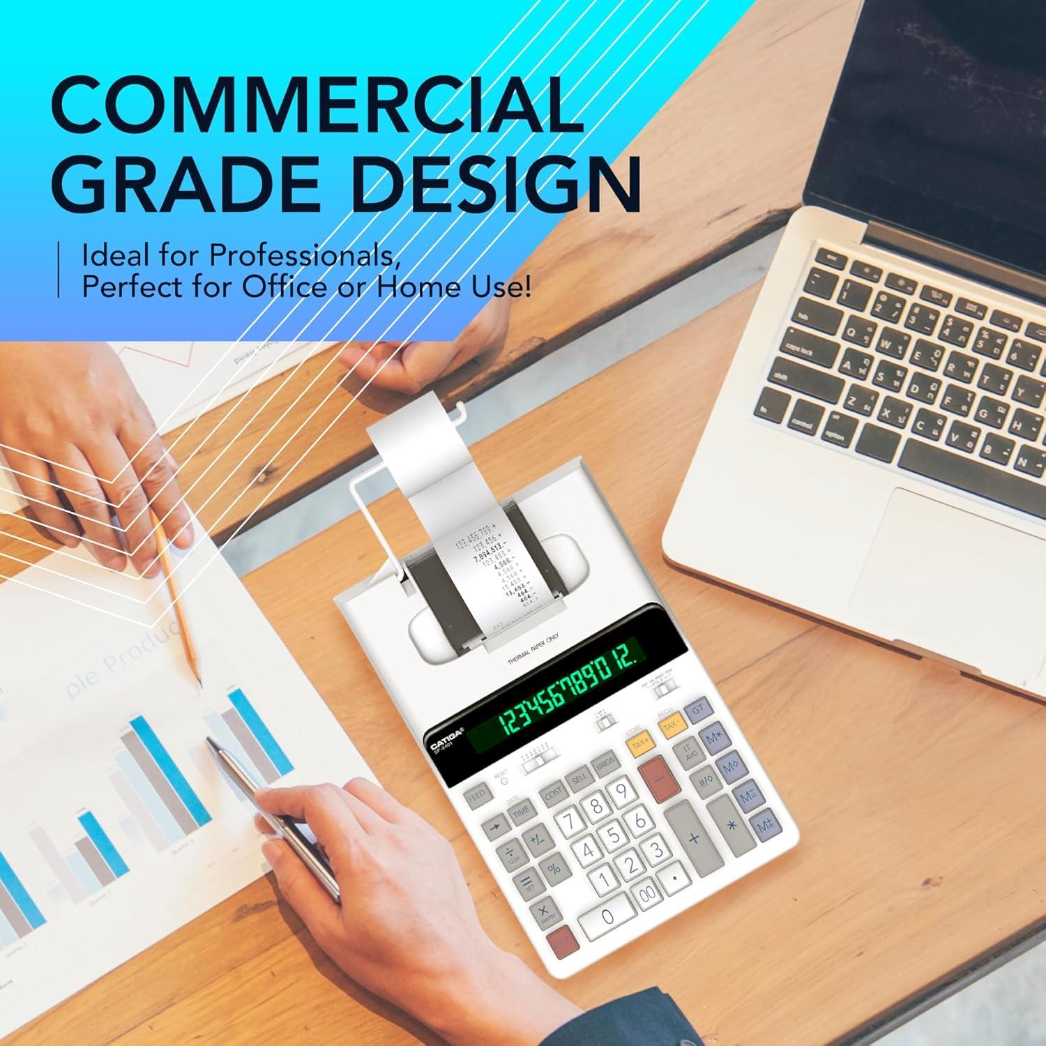 CATIGA 12 Digit Thermal Printing Calculator with Tape Print Out, Ink-Free Adding Machine, 5X Faster Quite at 8.0 LPS, Extra Large Fluorescent Display, Tax Calculation with Clock and Calendar, SP-2401(Black)