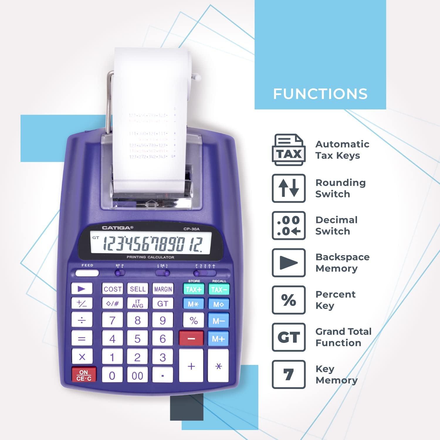 Printing Calculator with 12 Digit LCD Display Screen, 2.03 Lines/sec, Two Color Printing, Adding Machine for Accounting Use, AC Adapter Included